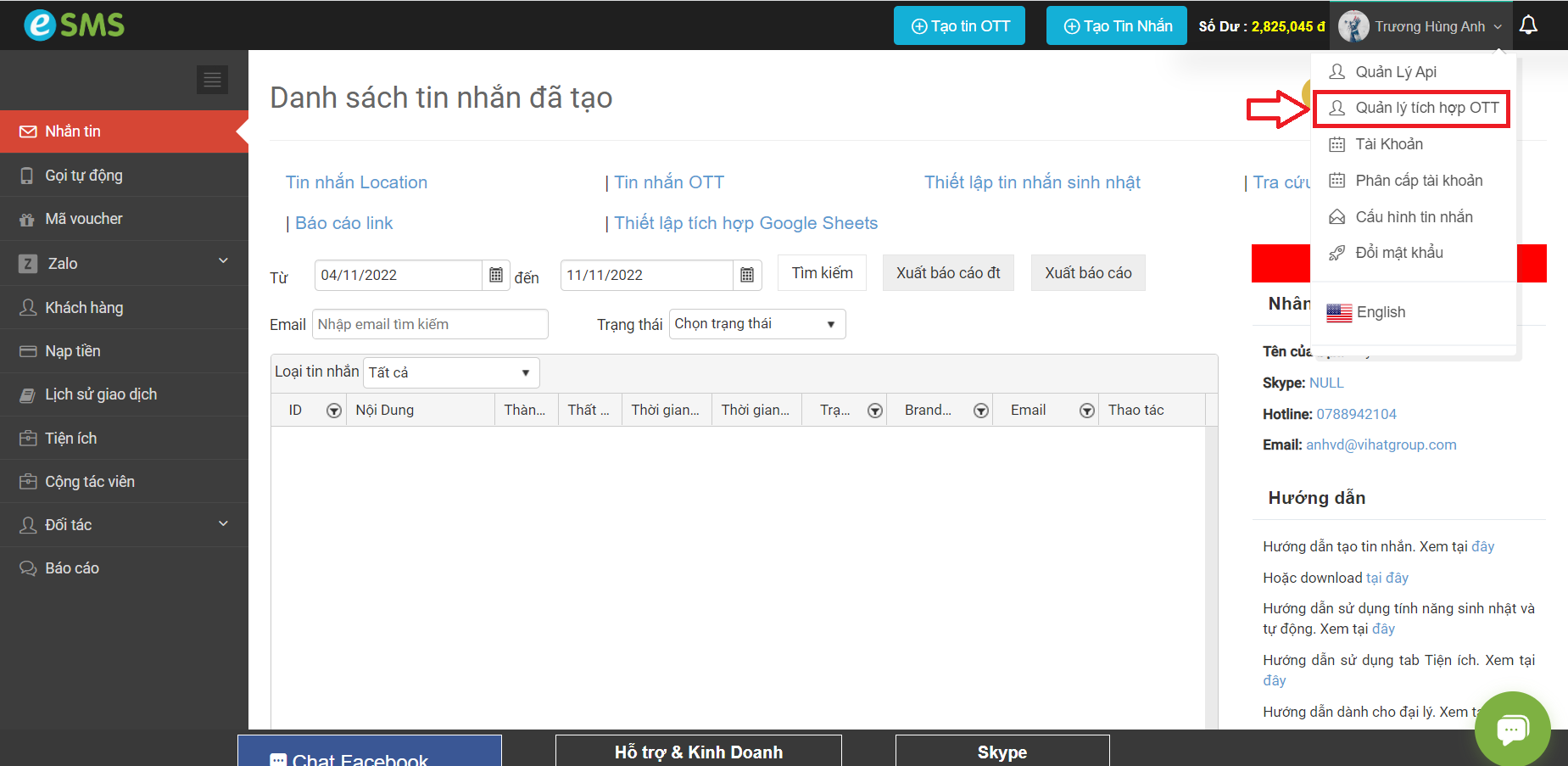 B1: Đăng nhập tài khoản của bạn tại eSMS.vn